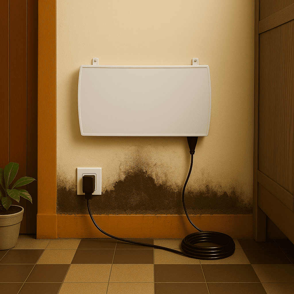 Este dispositivo foi concebido para tratar humidades ascensionais. Não pode eliminar infiltrações de água ativas, danos causados por inundações ou bolores visíveis: estes problemas exigem tratamentos complementares.